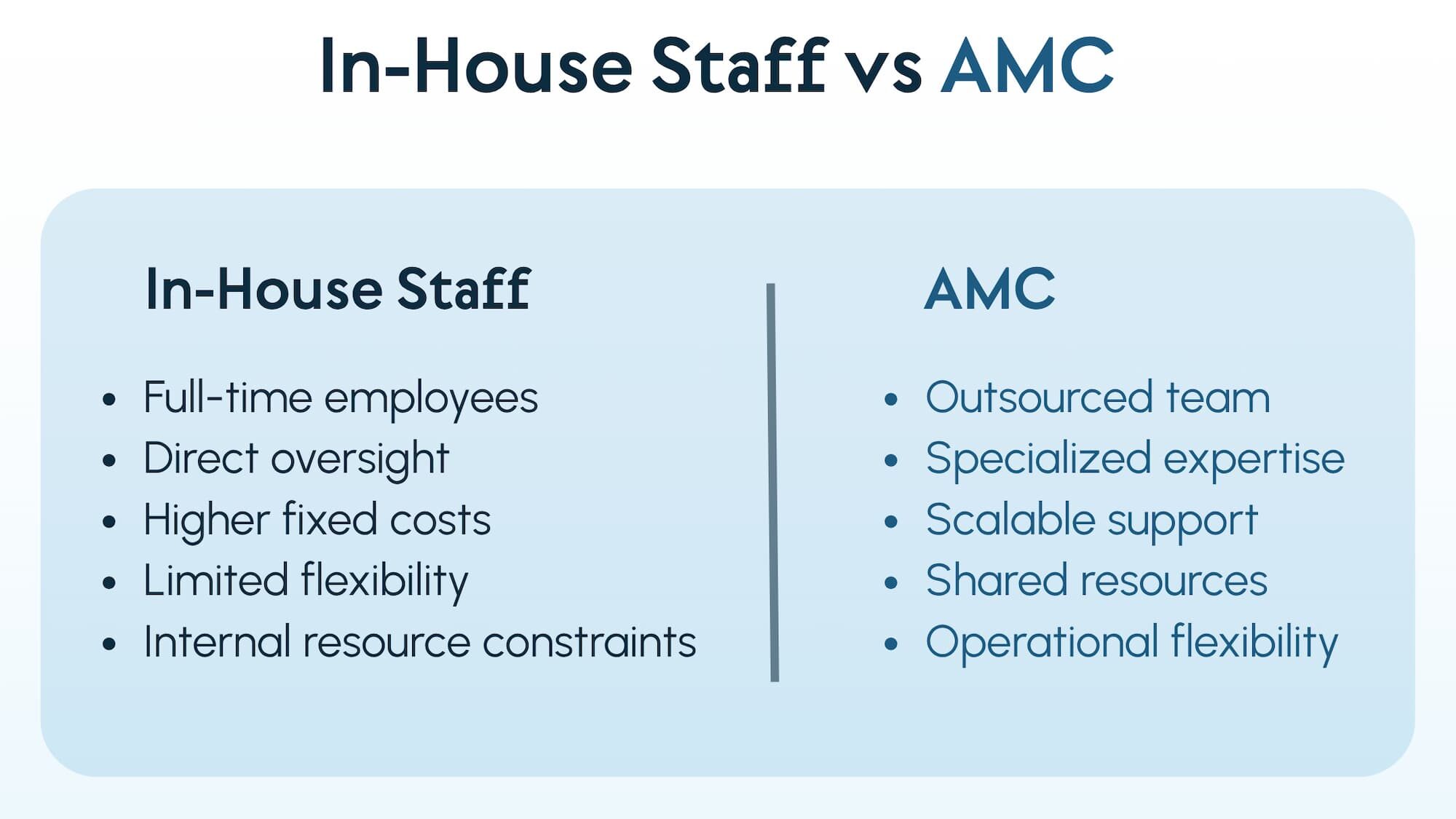 AMCs typically support multiple organizations at the same time. This shared model allows associations to access experienced staff and specialized services without hiring full-time employees for every operational role.
